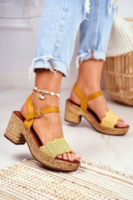 Openwork Sandals On A Block Heel Sergio Leone SK855 Yellow