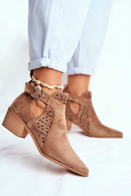 Women's Stiletto Boots Suede Openwork Beige Morrena