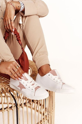 Women's Leather Sneakers With A Star BIG STAR DD274691 White-Pink