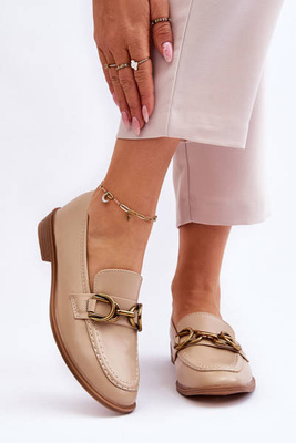 Women's Moccasins Made Of Eco Leather Beige Lomnela
