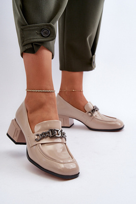 Beige Patent Leather Court Shoes with Block Heel Ilvanna