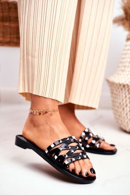 Women's Slides Black Rubber Studs Patty