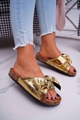 Cork Flip Flops with Cocard Gold Metallics