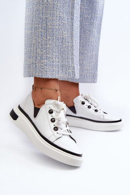 Women's Leather Platform Sneakers with Decorative Buttons D&A SN67 White