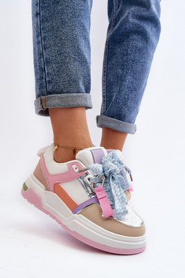 Women's Sneakers on Platform with Decorative Lacing and Glitter White Belmira