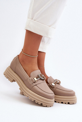 Women's Leather Moccasins with Decoration Laura Messi 2780 Dark Beige
