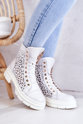 Booties With Cut-Out Detail Zip-up Boots White Corano
