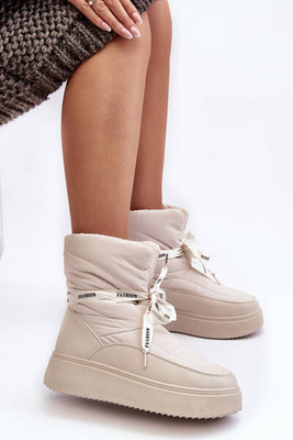 Women's Snow Boots With Ornamental Lacing Light Beige Siracna