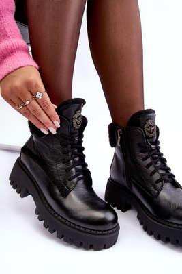 Women's Leather Lined Fur-Trimmed Trapper Boots Black Rehin