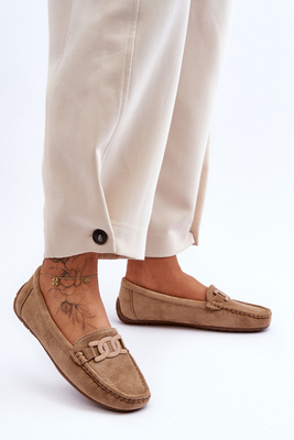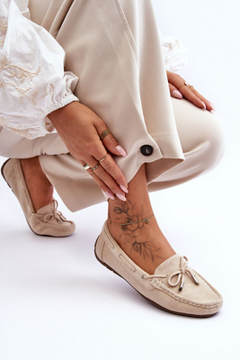 Suede Loafers With Bow And Fringes Dark beige Dorine
