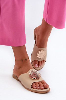 Women's Flat Heeled Sandals with Beige Decoration Rivashea