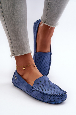 Women's Blue Perforated Moccasins Rasirna