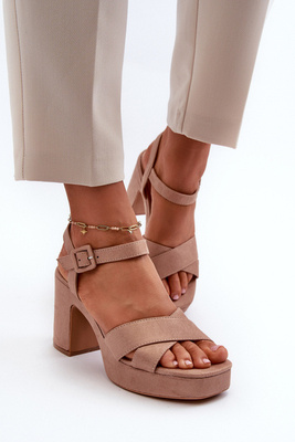 Women's sandals in faux suede on a stiletto and platform in dark beige Sakane