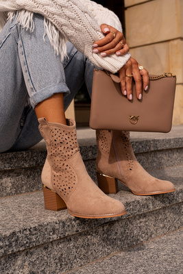 Openwork ankle boots with block heel made of eco suede zip closure dark beige Sevana