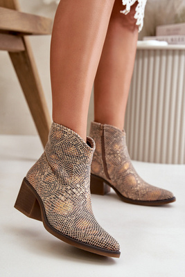 Women's Cowboy Boots With Zipper Animal Print Gold Merisine