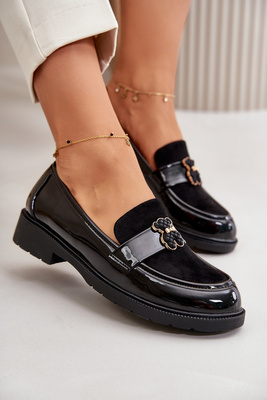 Lacquered Women's Moccasins With Bear Black S.Barski HY42-339A