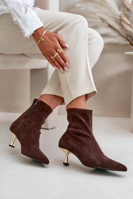 Women's Stiletto Boots Eco Suede With Pointed Toes Brown Irithare