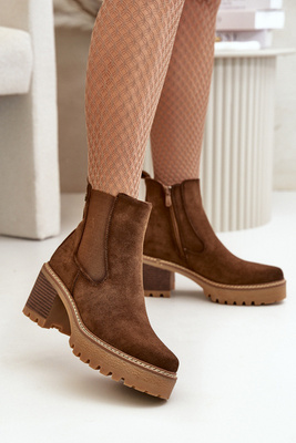 Women's Insulated Heeled Boots Eco Suede Brown Irissinae