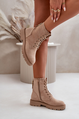 Women's Insulated Work Ankle Boots with Zipper Eco Suede Beige Mardia