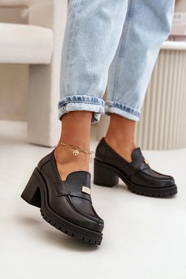 Zazoo 20168 Elegant Women's Heeled Shoes Natural Leather Black