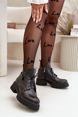 Zazoo 60483 Women's Leather Ankle Boots With Low Shaft Insulated Black