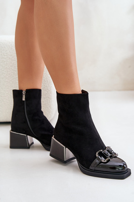 Elegant Women's Heeled Ankle Boots With Decoration Black MR880-127