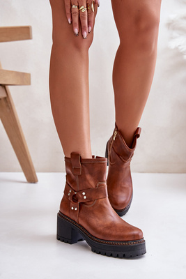 Women's Leather Ankle Boots With Zip Brown Lewski 3435
