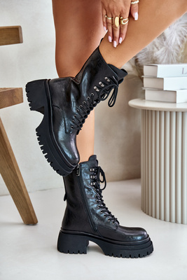 Leather Women's Warm Lined Work Boots GOE OO2N4121 Black