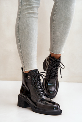 Leather Patent Ankle Boots On Block Warm D&A JC42-78 Black