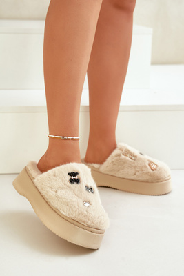 Women's Fuzzy Slippers On Thick Sole With Pins Beige Zintoria