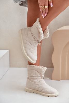 Ladies Snow Boots With Drawstring Lined With Sheepskin Light Beige Vamidra