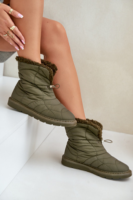 Women's Snow Boots With Drawstring Insulated With Sheepskin Dark Green Vamidra