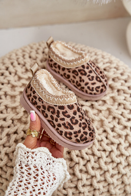 Snow Boots Kids Ankle Boots With Leopard Print On Platform Insulated With Fur Brown Vilabria