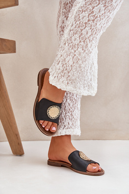 Leather Slippers With Decoration On Flat Heel Zazoo 3047/O Black
