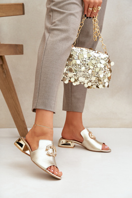 Leather Elegant Women's Slippers On Low Heel Laura Messi 2874 Golden