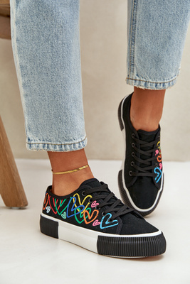 Ladies Sneakers Hearts Black Fonirea