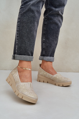 Women's Shoes With Perforated Pattern On Wedge Gold Lisvia