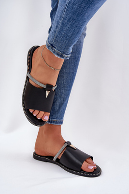 Eco Leather Slippers On Flat Heel With Decorative Strap Black Hirtewi