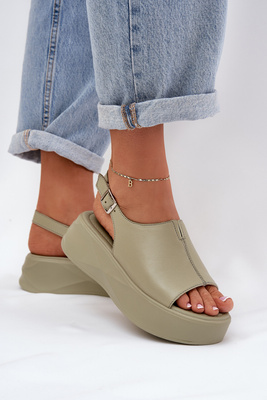 Leather Women's Platform Sandals D&A SJ2301-2 Green