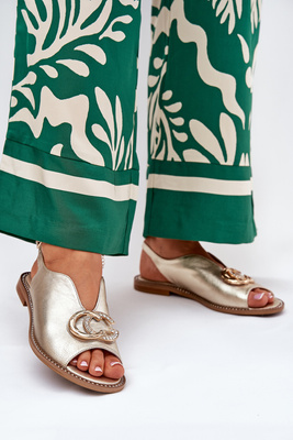 Leather Sandals With Flat Heel And Decoration Laura Messi 2865 Gold