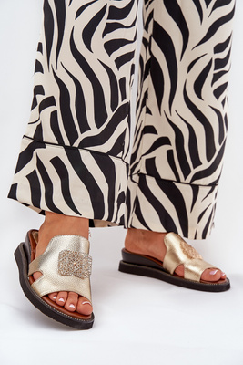 Ladies Wedge Sandals Eco Leather With Decoration Gold Sarela
