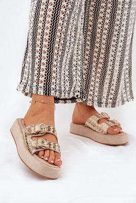 Women's Platform Sandals With Buckles And Weaving Khaki Limme