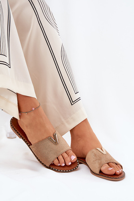 Ladies Flat Sandals With Decorative Details Khaki Saliena