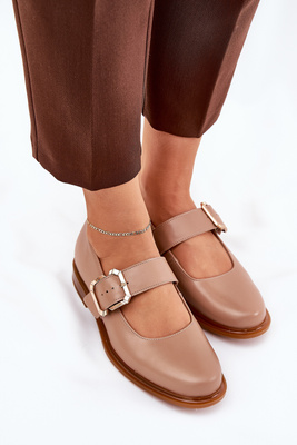 Leather Women's Shoes With Buckle Laura Messi 2980 Dark Beige