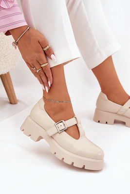 Women's Loafers With Buckle On Platform And Flat Heel Beige Venda