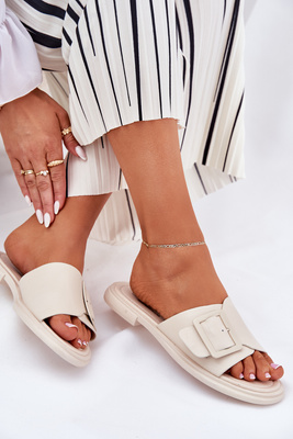 Leather Women's Slippers With Buckle D&A Beige SJ2302-01