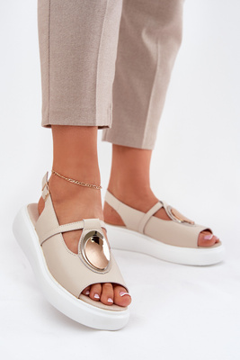 Leather Elegant Sandals Women's S.Barski GR51-603 Beige
