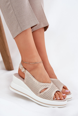 Women's Leather Wedge Sandals S.Barski LR51-660 Gold