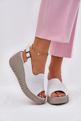 Women's Sandals Made Of Natural Leather On Wedge White Artiker 54C0786