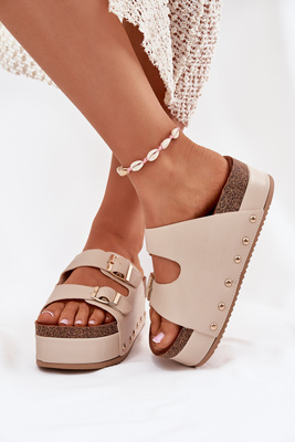 Women's Sandals With Buckles On A Chunky Platform Beige Odisene